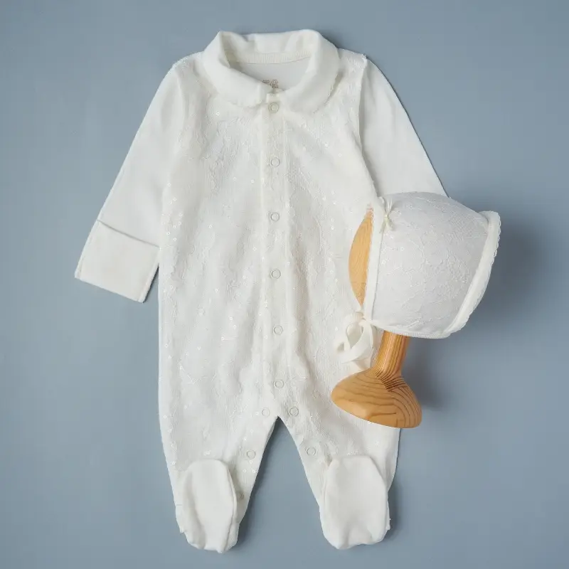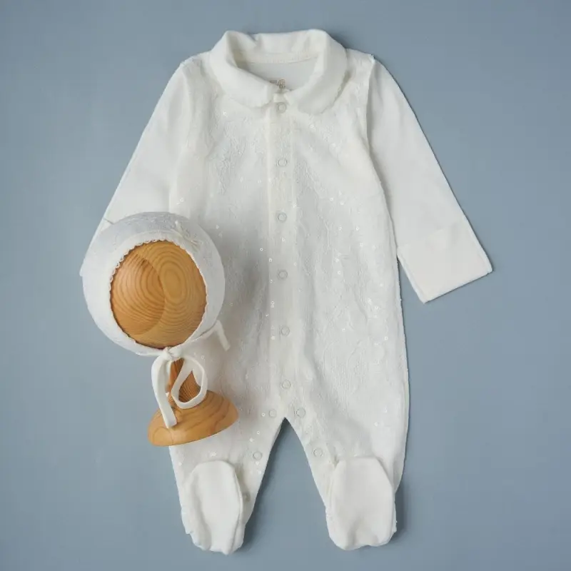 Комбез на кнопках + чепчик Little Star Кремовая пайетка интерлок, крем 62