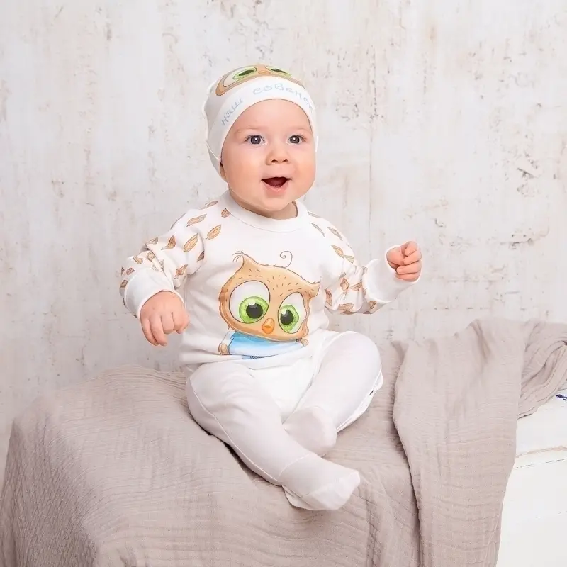 Комбинезон-асим на кнопках Little Star Совенок крем 46