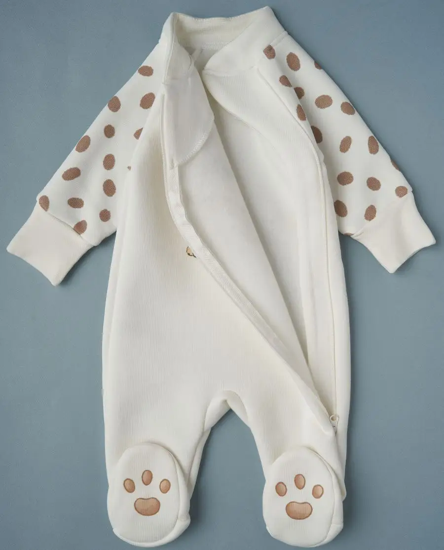 Комбинезон Little Star из футера с начесом "Рысенок", крем, р.68