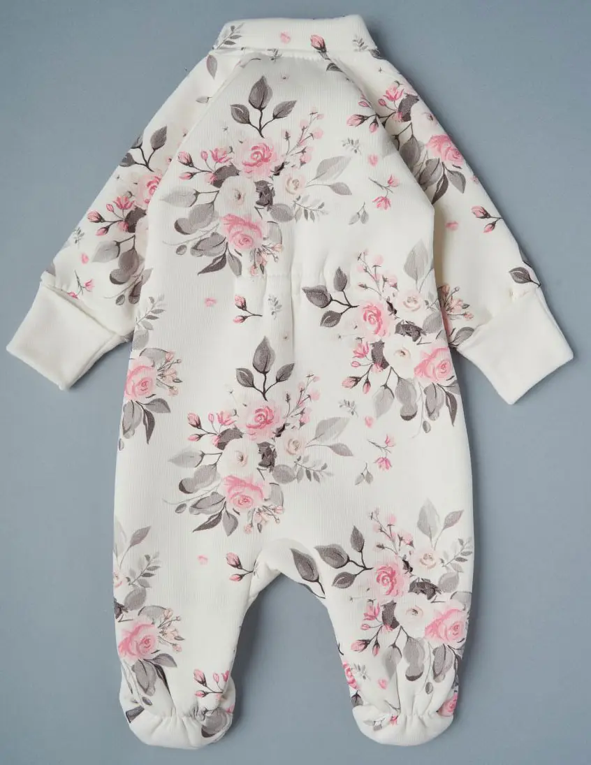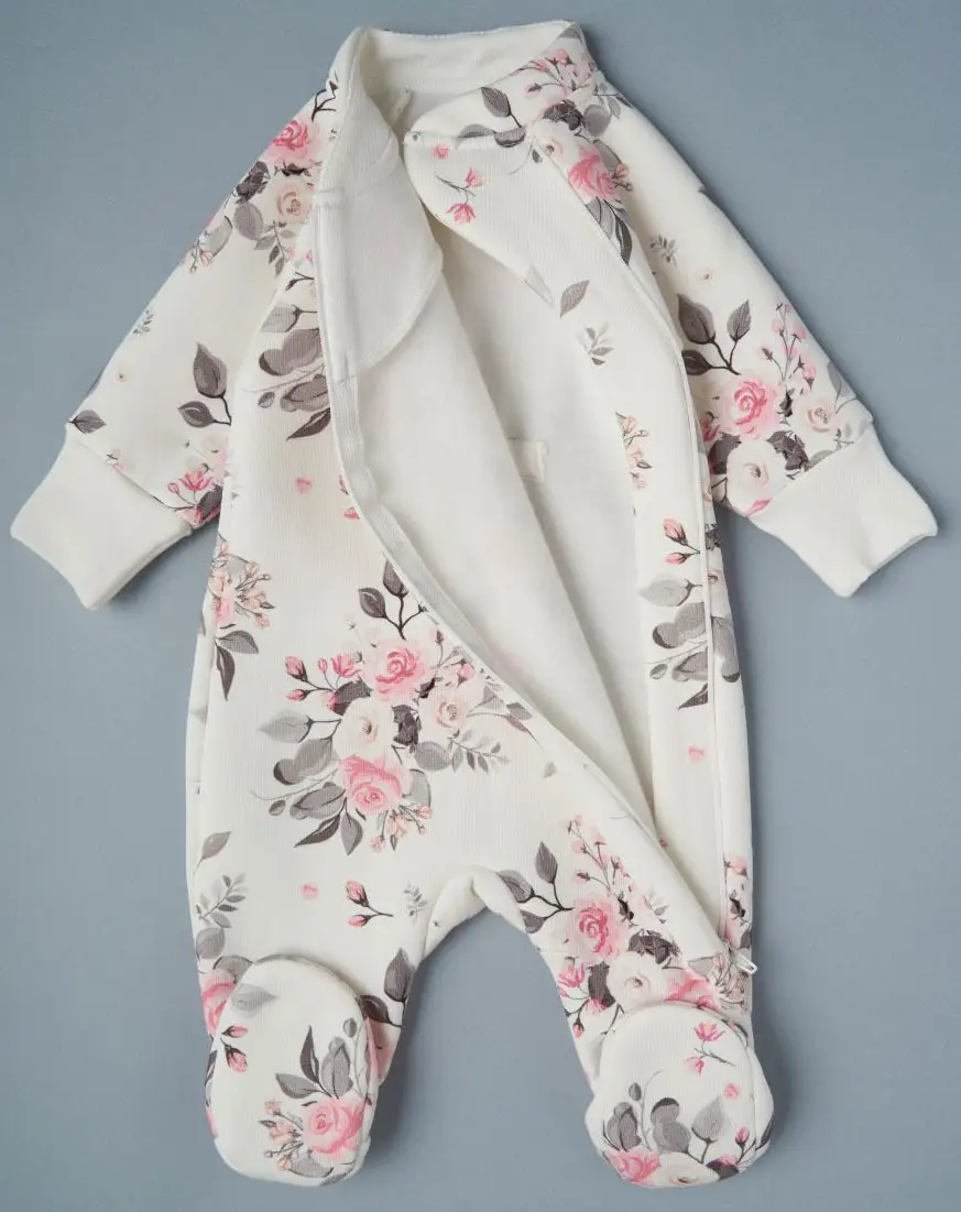 Комбинезон Little Star из футера с начесом "Цветы на креме", крем, р.56