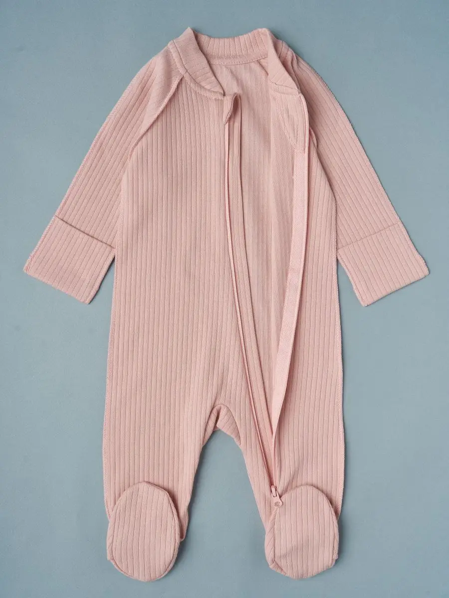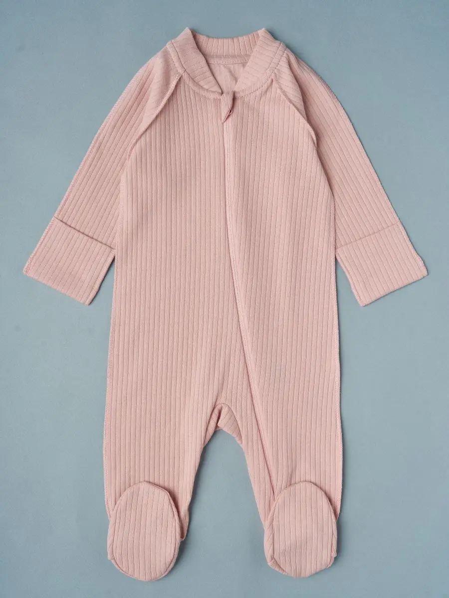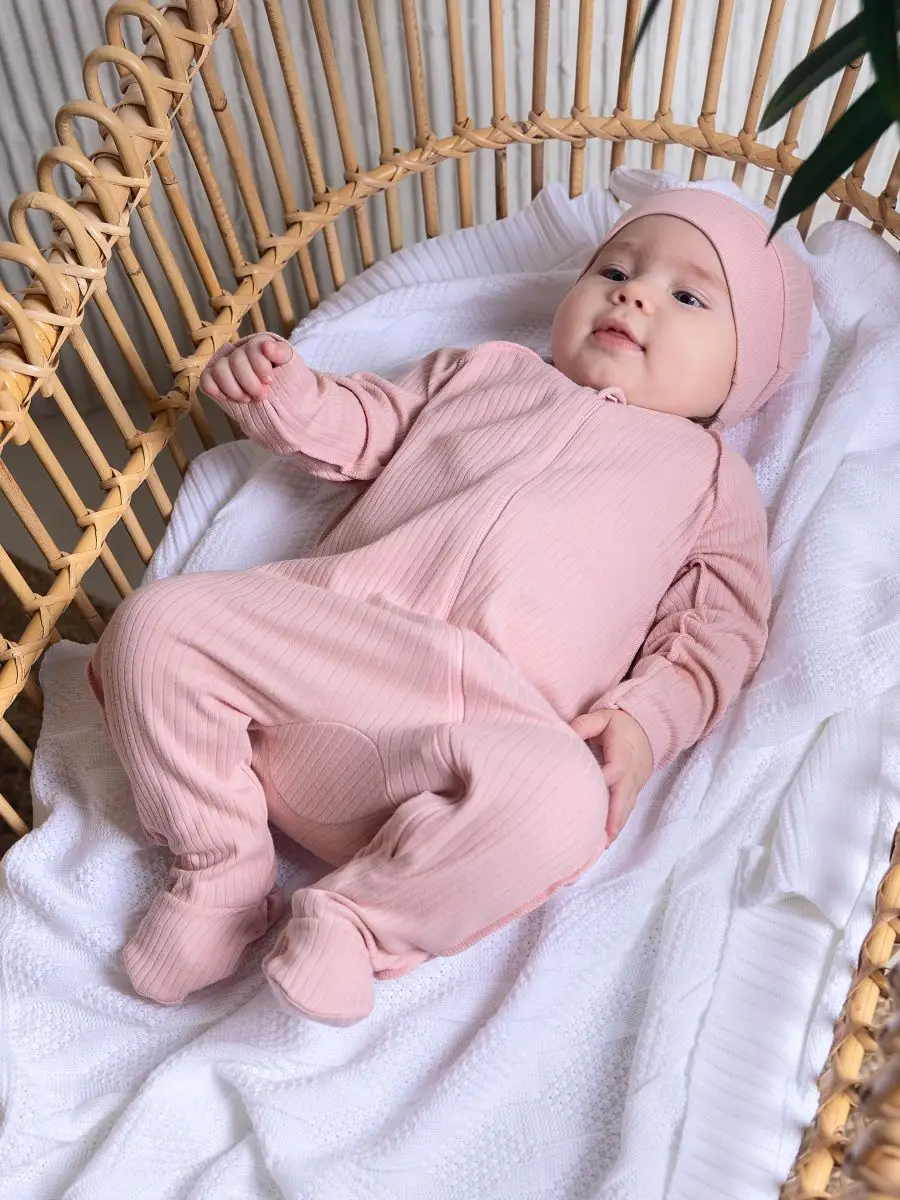 Комбинезон Little Star на молнии вставка интерлок пудровый 68