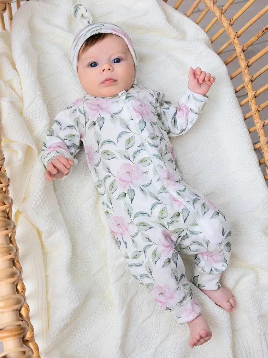 Комбинезон Little Star Пионы интерлок, крем 56