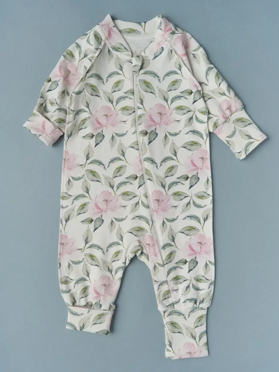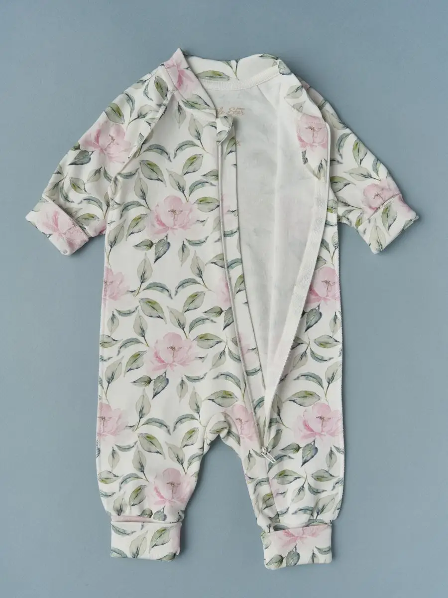 Комбинезон Little Star растущий на молнии Пионы, р. 74, крем