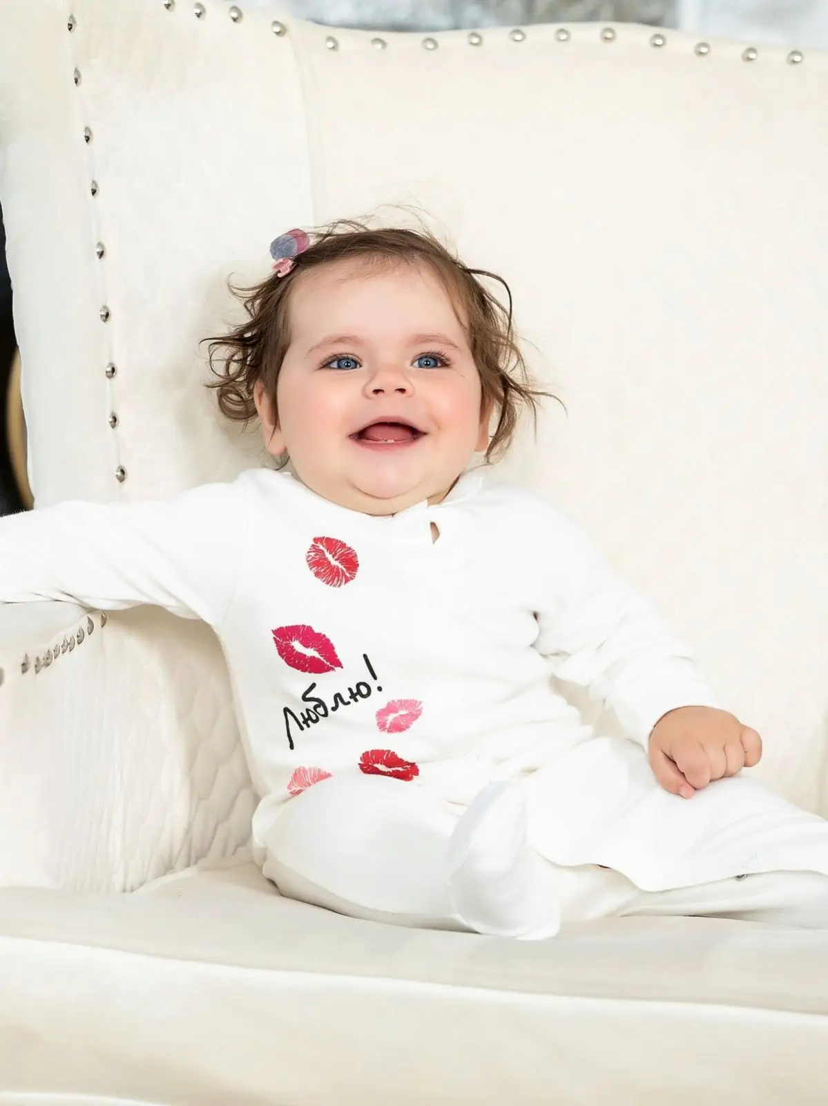 Комбинезон на кнопках Luxury Baby Люблю белый 68