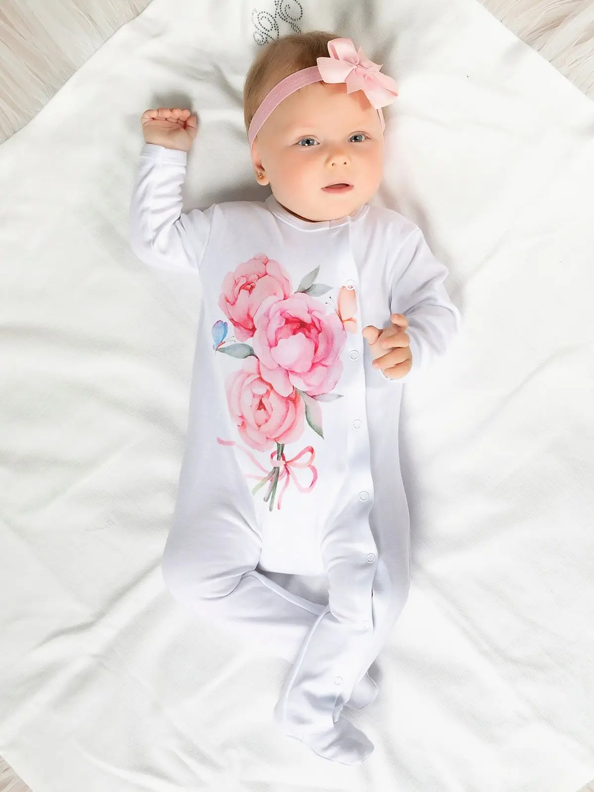 Комбинезон на кнопках Luxury Baby Пионы белый 74
