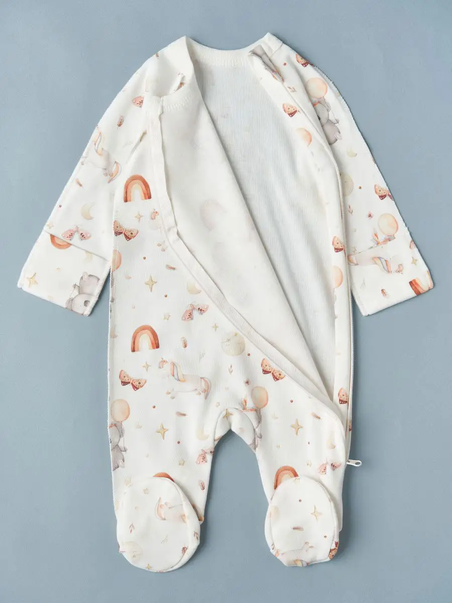 Комбинезон на молнии Коалы и Единороги Little Star, размер 68, интерлок, крем