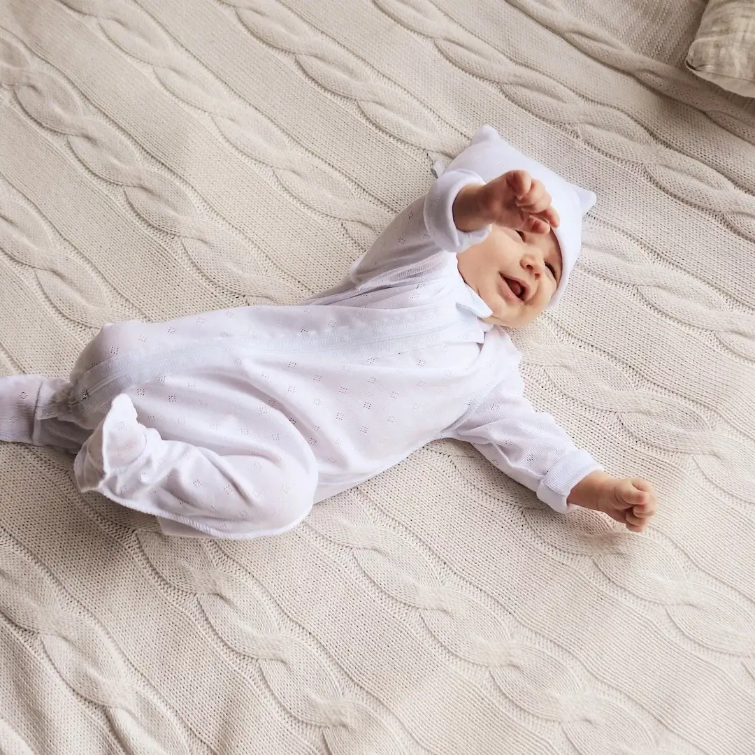 Функциональный комбинезон с безопасной молнией быстро надевается и снимается. Изготовлен из 100% хлопка и подходит для малыша с самого рождения!