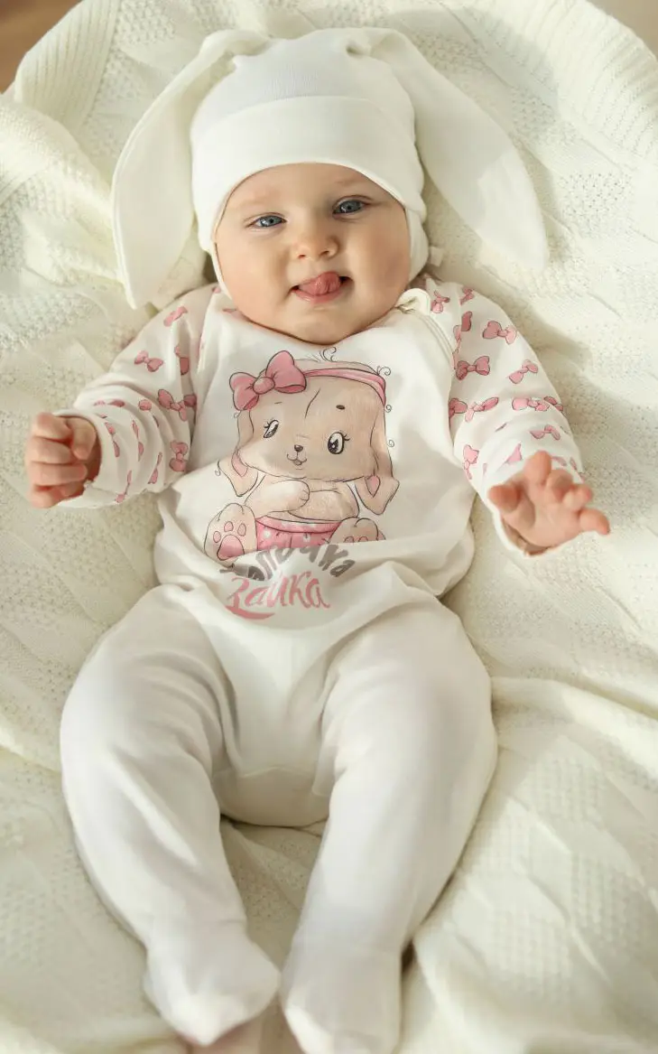 Комбинезон "Лапочка Зайка" – идеальный выбор для маленьких модниц! Он застёгивается на молнию, что облегчает процесс одевания и раздева...
