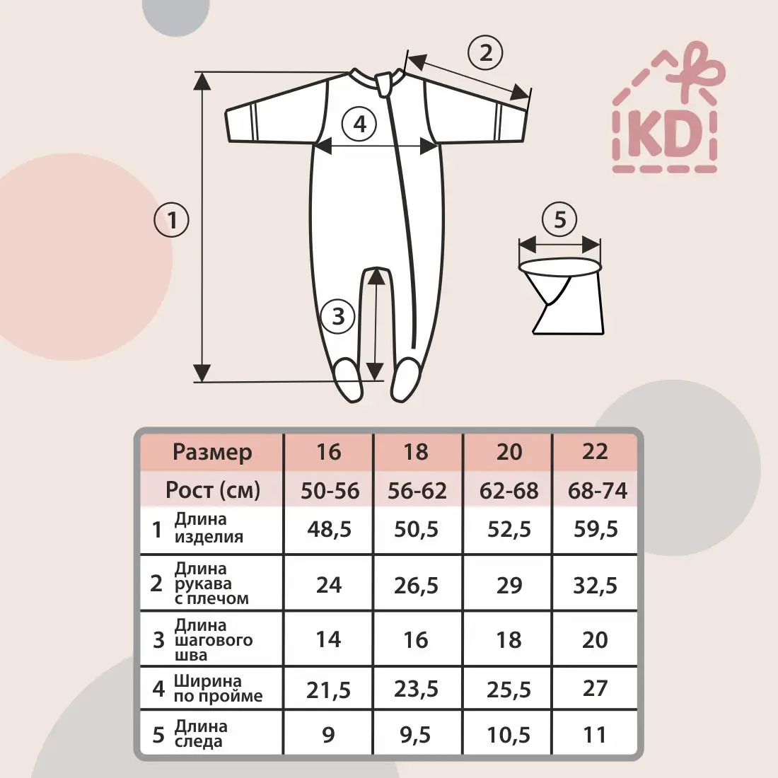 Комбинезон слип Мягкий Хлопок KiDi kids, 3 шт/уп, р. 16, рост 50-56 см