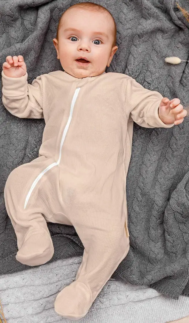 Комбинезон (слип) на молнии детский AMAROBABY Fashion, бежевый, р.68