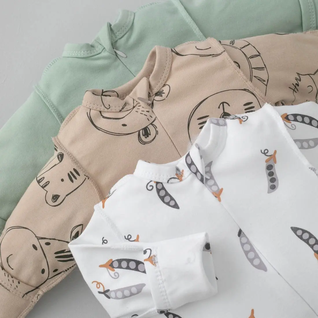 Три милых комбинезончика-слипа в разных расцветках – идеальный выбор для вашего малыша! Без воротничка, с защитой под горлышко – они безо...