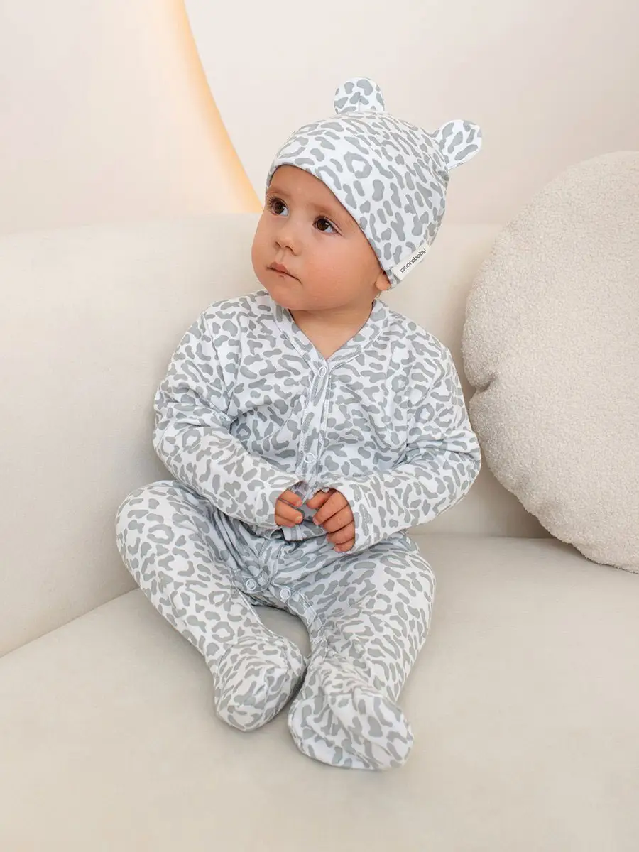 Комплект комбинезонов (слипов) детских с шапочкой Amarobaby Nature, белый, леопард, р.62