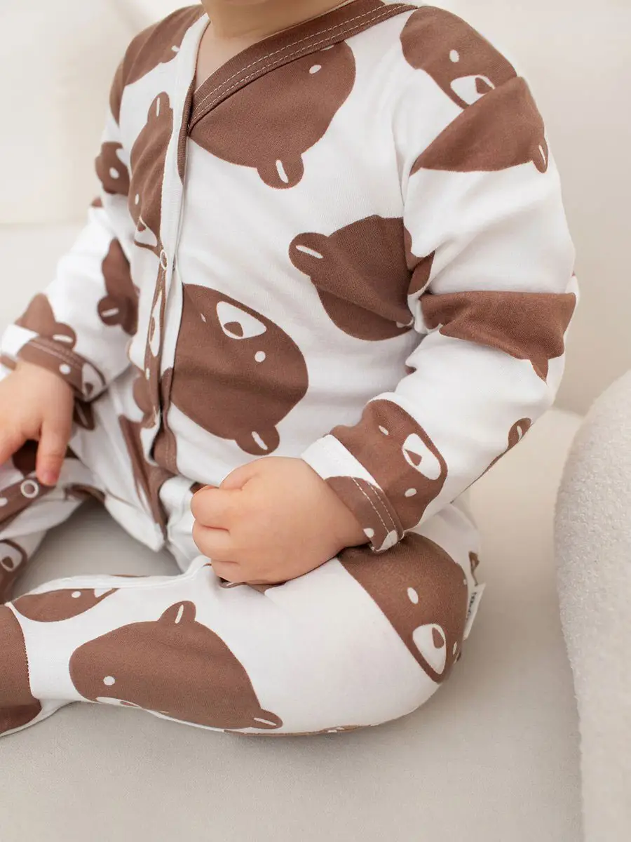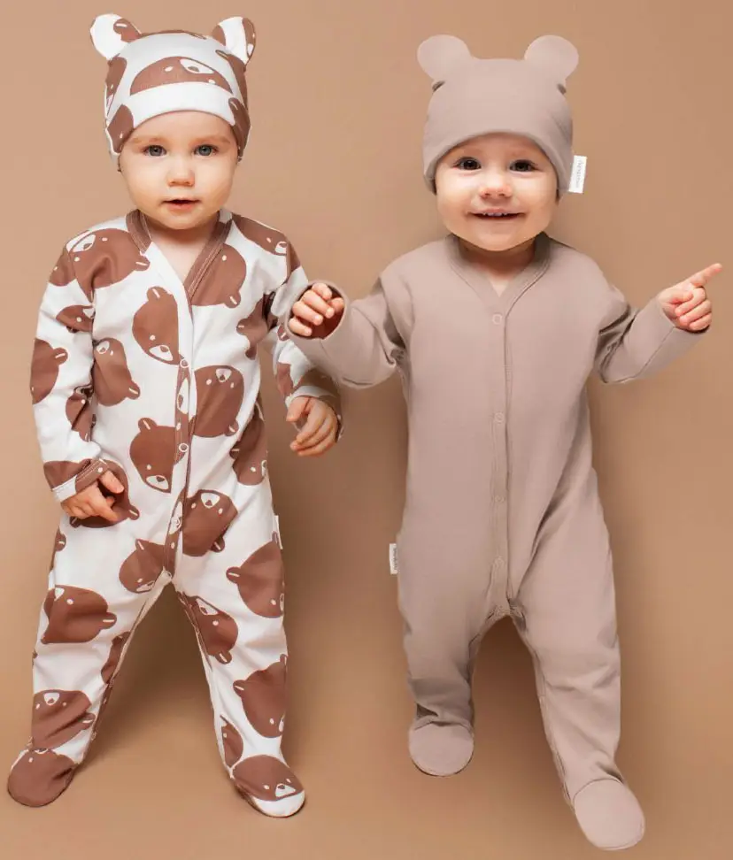 Комплект комбинезонов (слипов) детских с шапочкой Amarobaby Nature, коричневый, мишки, р.56