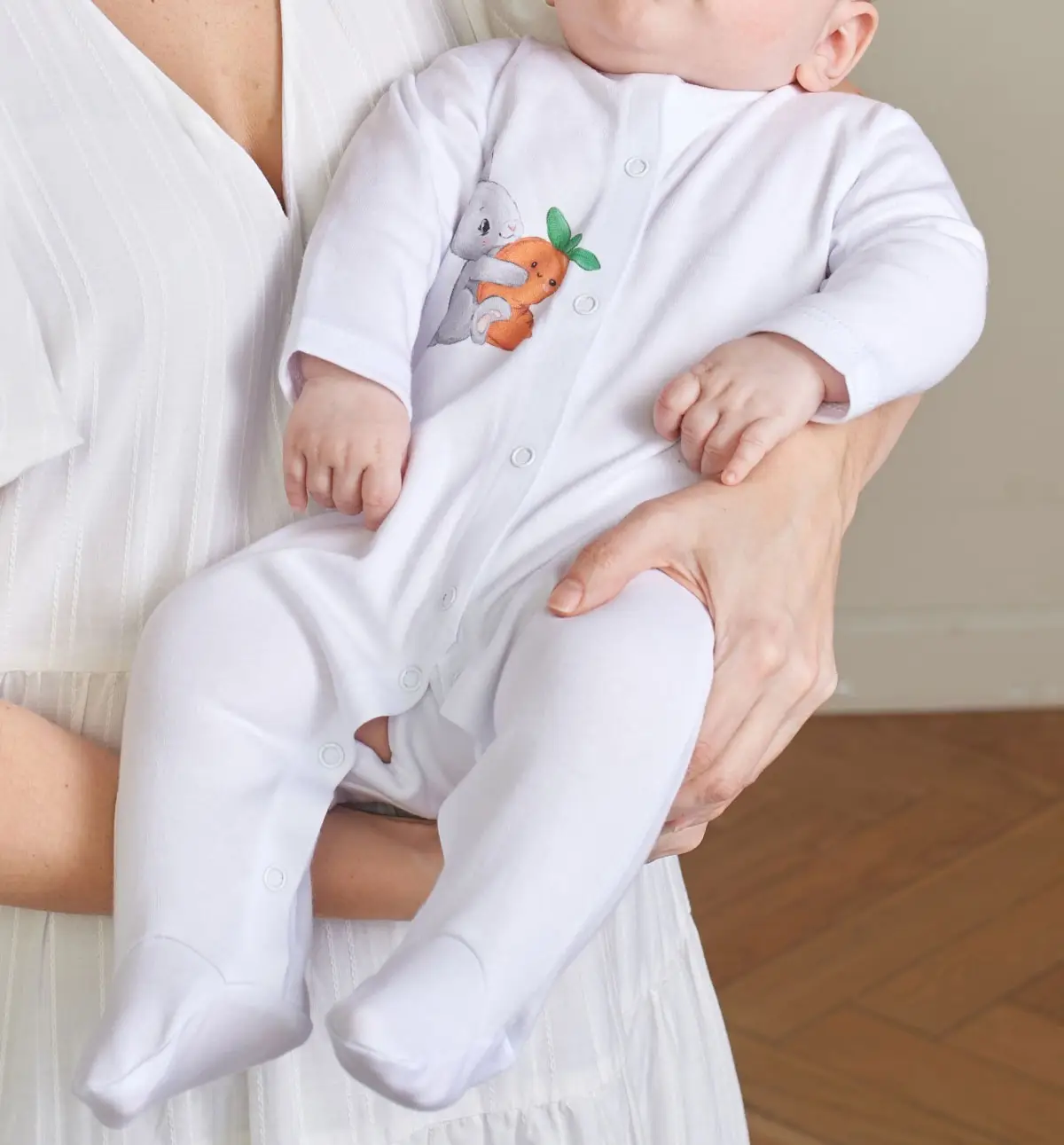 Набор комбинезонов Зайчики-морковки Luxury Baby, р. 56, белый, 3 шт