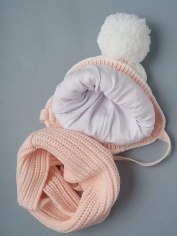 Зимняя шапочка с бумбоном выполнена из двухслойной вязки, отлично прилегает по головке малыша, закрывает ушки, лобик и прекрасно защищает от холода.
