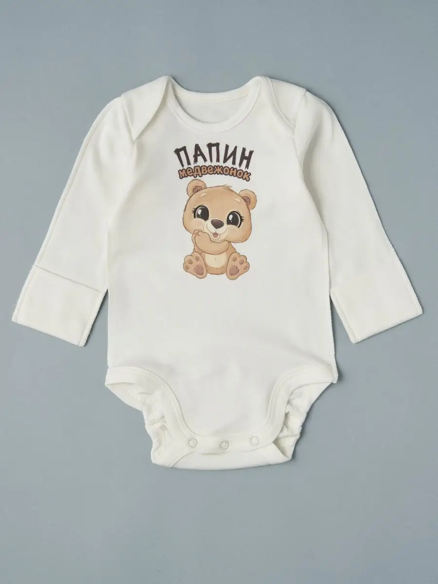 Боди+штанишки Little Star Папин медвежонок интерлок, крем, коричневый 68