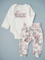 Стильный комплект для прогулок, состоящий из 2 предметов. Выполнен из нежнейшего интерлока. В таком гармоничном комплекте новорождённый будет выглядеть очаровательно.