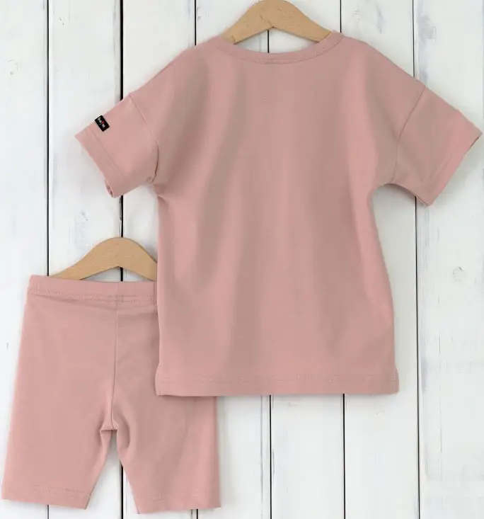 Детский комплект от бренда Baby boom состоит из футболки свободного кроя с небольшими разрезами по бокам и коротких леггинсов. Выполнен из эластичной кулирки, 95% хлопок, 5% эластан.