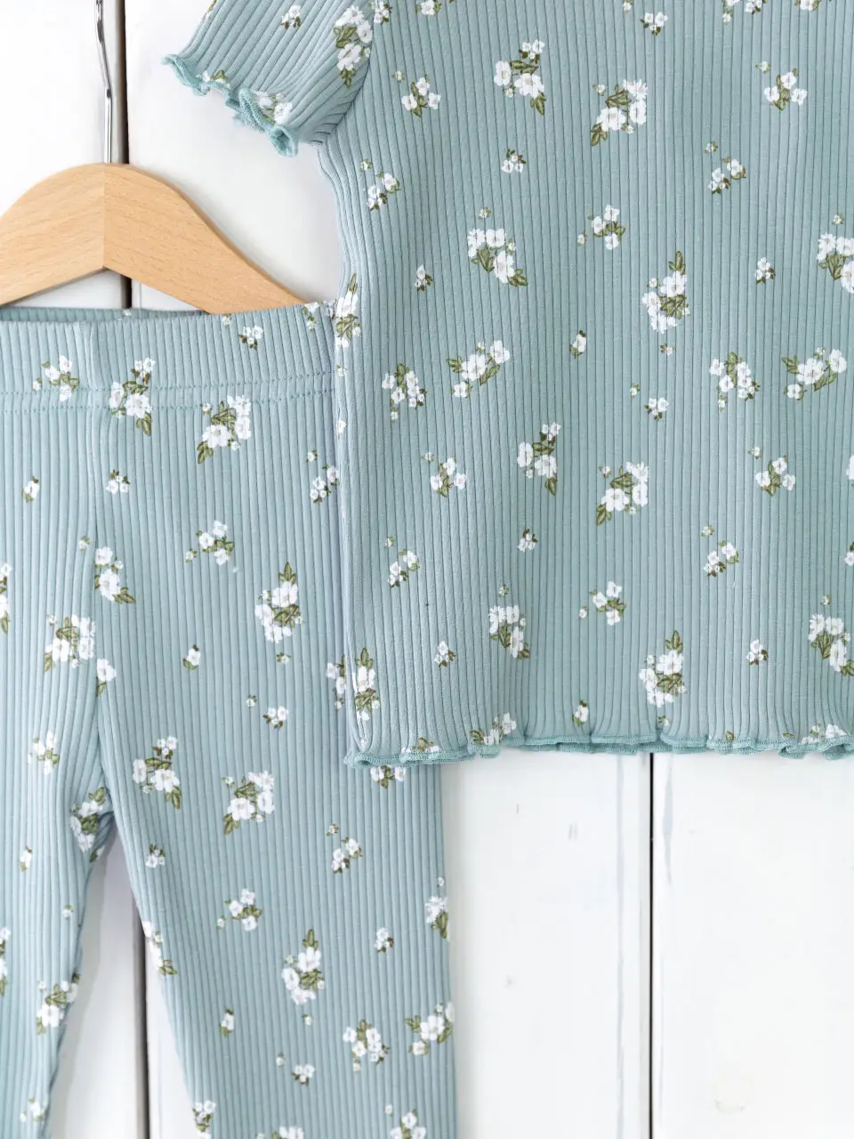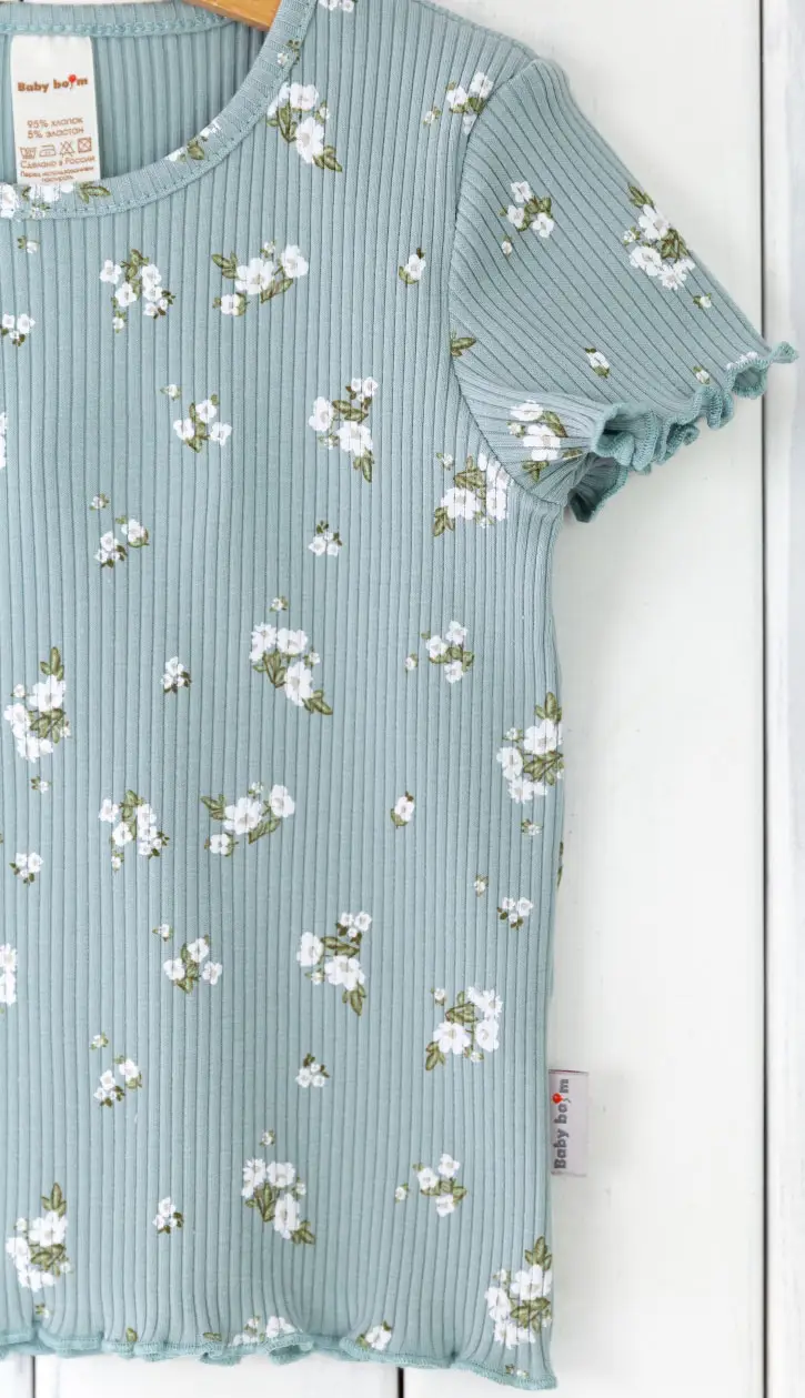 Детский комплект с цветами от бренда Baby boom изготовлен из материала кашкорсе «лапша». Материал натуральный, так как хлопок занимает 95% состава.