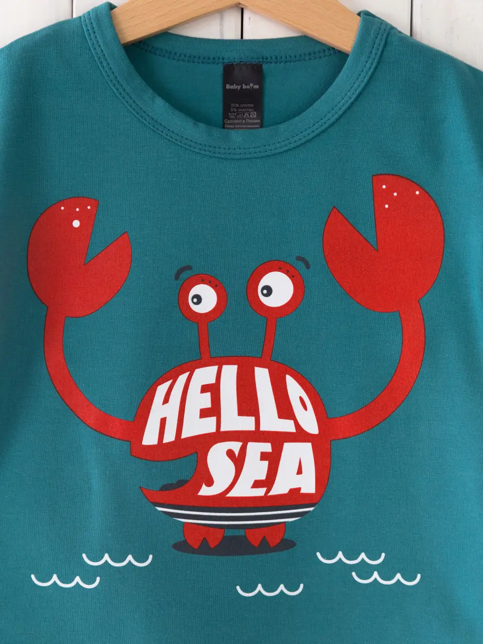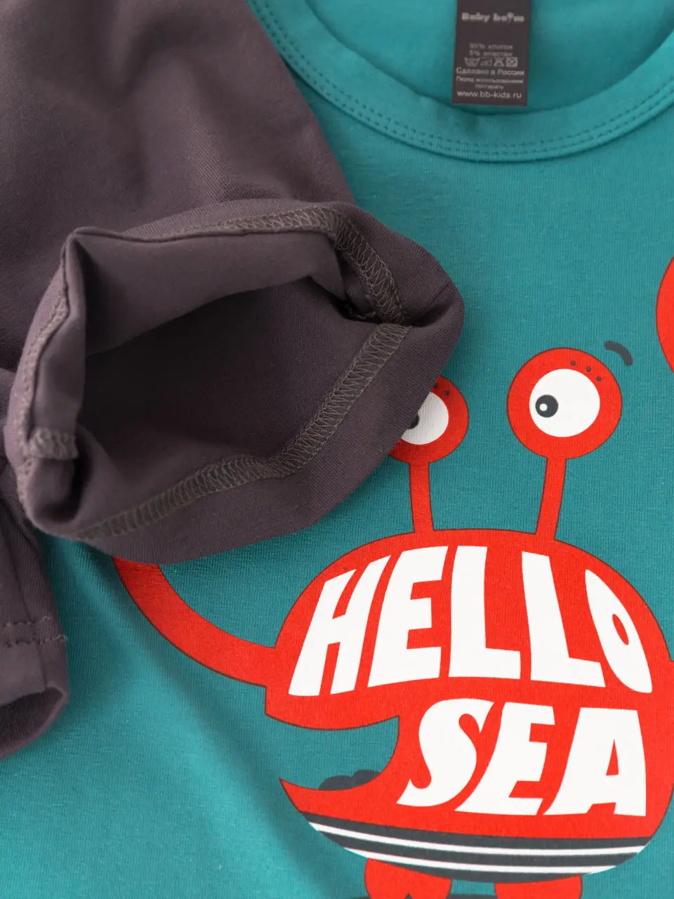 Детский комплект с морской тематикой от бренда Baby boom изготовлен из эластичной кулирки. Кулирный трикотаж комфортный в носке, благодаря шелковистой, гладкой поверхности.