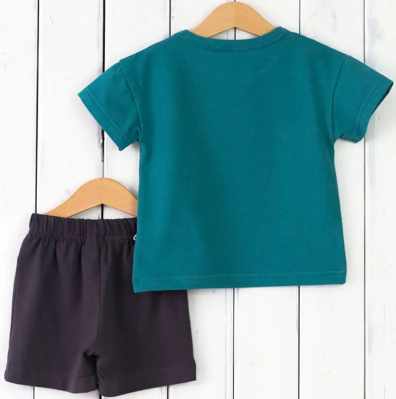 Детский комплект, футболка морская волна и шорты, графит, р. 80, КД467/1-К