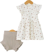 Летний комплект от бренда Baby boom из кашкосе "лапша", материал имеет хорошую эластичность, не деформируется после частых стирок. Платье с крылышками, отрезное по талии, юбочка присборена. Трусики с высоким поясом и рюшами. Комплект изготовлен из очень мягкой, дышащей и комфортной гипоаллергенной ткани – 100% хлопка.