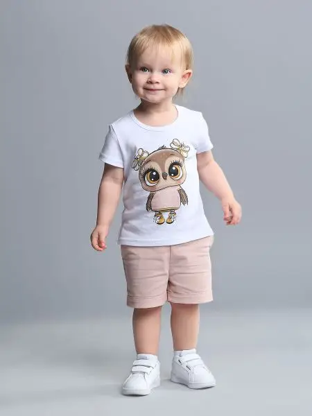 Футболка и шорты Little Star Совушка белый, персик 98