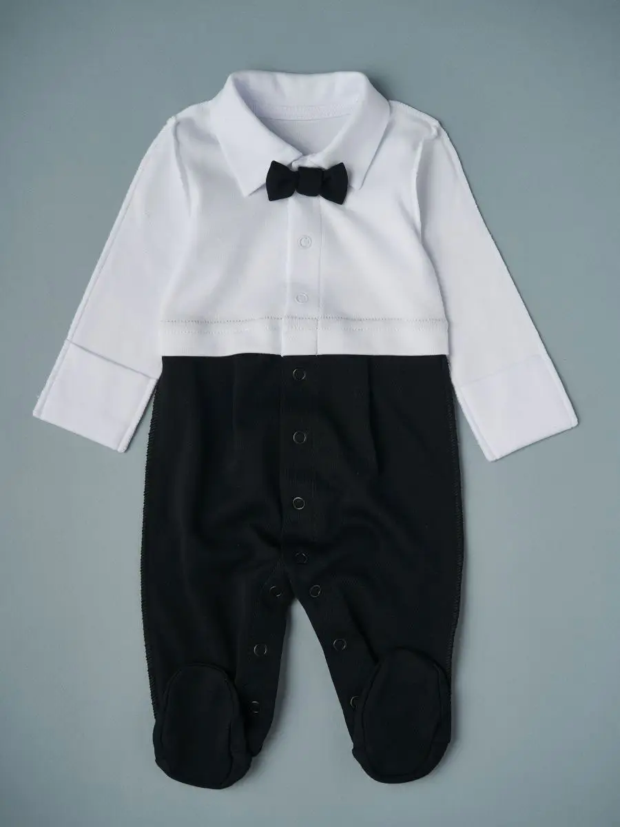 Комбинезон Джентльмен Little Star, р. 56, шапочка-котелок, интерлок, бело-чёрный