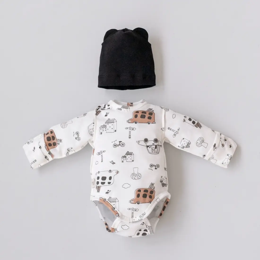 Мягкий и в то же время нарядный комплект Автобусы – отличный вариант для ежедневных прогулок.