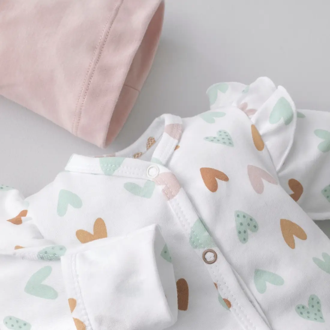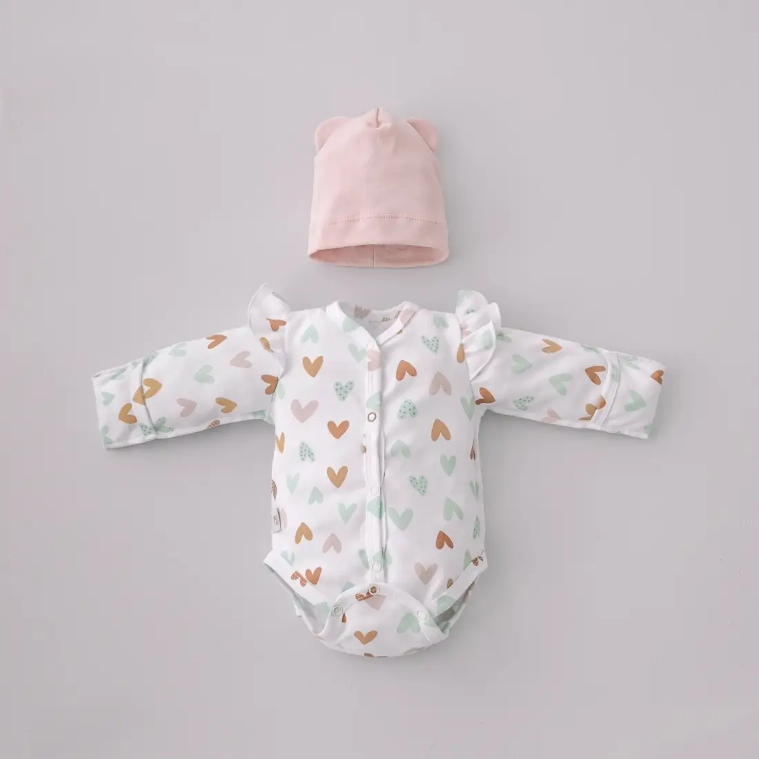 Комплект из 3-х предметов – боди на кнопках из интерлока дополнен шапочкой и штанишками. Такой комплект отлично подойдёт для повседневной носки и будет великолепно смотреться на вашем малыше.