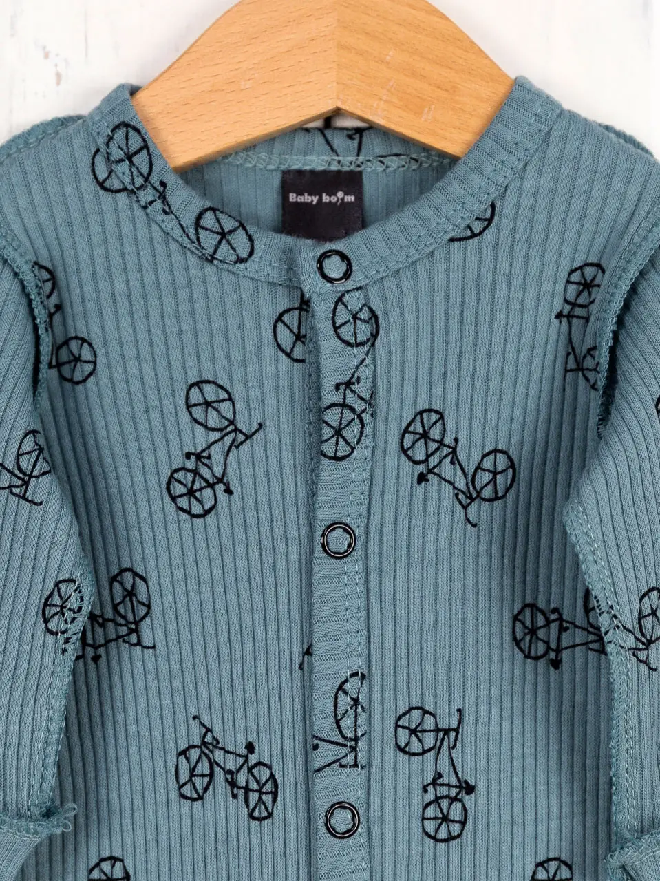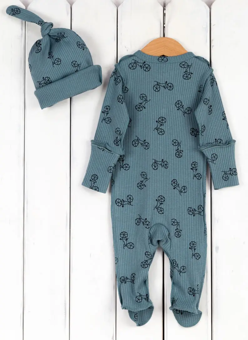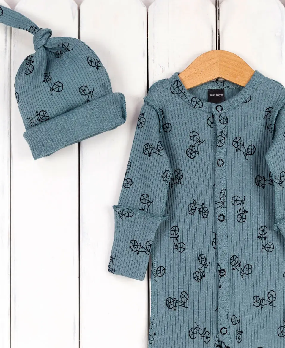 Комплект Baby boom для новорождённых, р. 56, велосипеды на серо-голубом, комбинезон, шапка