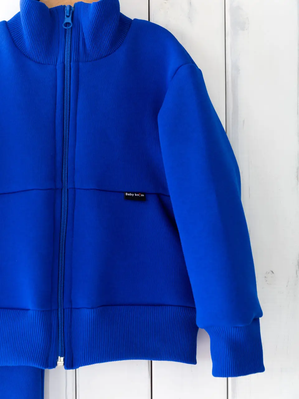 Тёплый комплект для малыша с начёсом – джемпер на молнии, с высоким воротником-стойкой и карманами, брюки на манжетах. Такой комплект отлично подойдёт для повседневной носки и будет великолепно смотреться на вашем малыше.