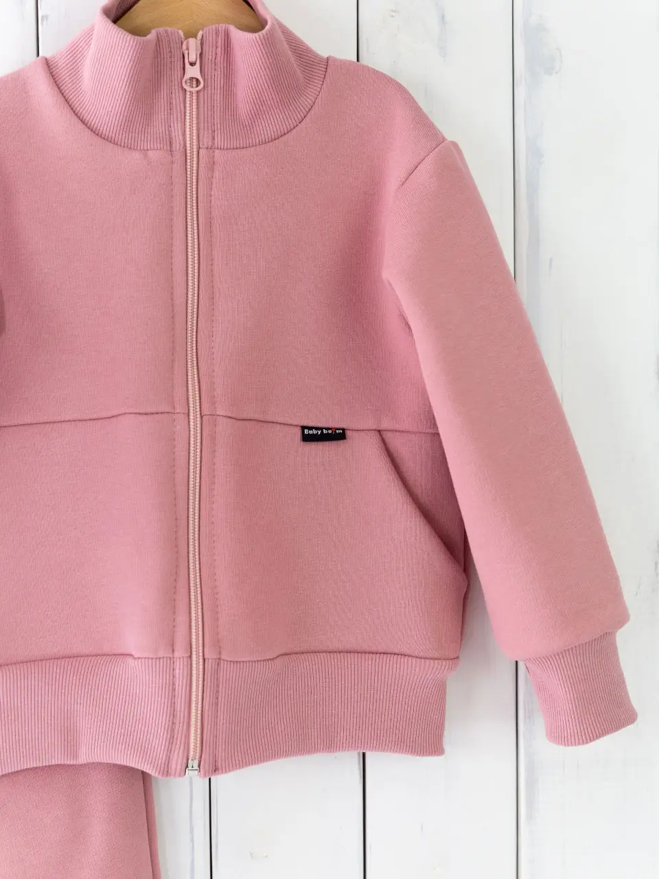 Тёплый комплект для малыша с начёсом – джемпер на молнии, с высоким воротником-стойкой и карманами, брюки на манжетах. Такой комплект отлично подойдёт для повседневной носки и будет великолепно смотреться на вашем малыше.