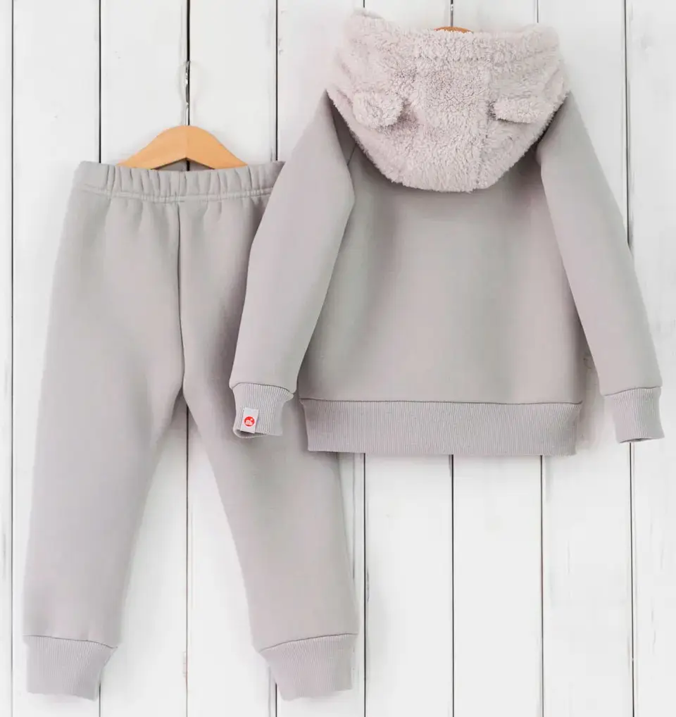 Тёплый комплект Baby boom из футера 3-нитки с начёсом. Капюшон с ушками и карманом-кенгуру из пушистого велсофта делают этот комплект невероятно уютным.