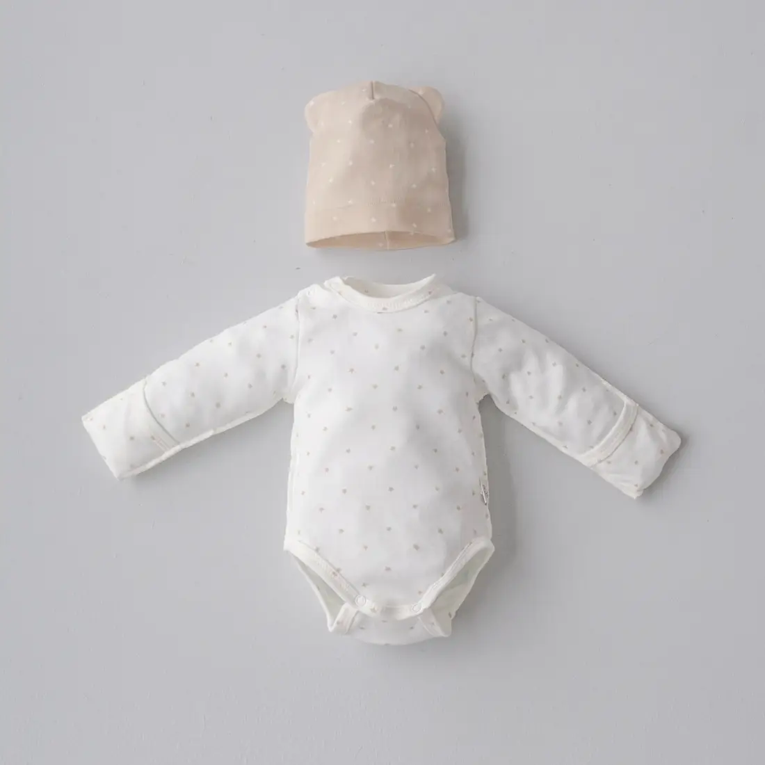 Стильный детский комплект от бренда KiDi обеспечит малыша теплом и комфортом и отлично подойдёт на каждый день.