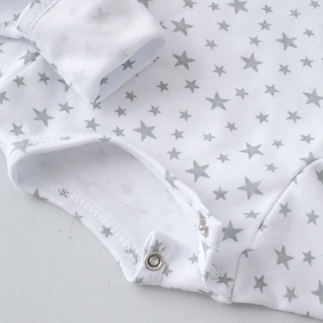 3х-предметный набор Звездочки. Выполнен из нежнейшего трикотажа. Все предметы комплекты сшиты швами наружу. чтобы не доставлять неудобства и натирания нежнейшей коже малыша. Такой комплект отлично подойдёт для повседневной носки и будет великолепно смотреться на вашем малыше.