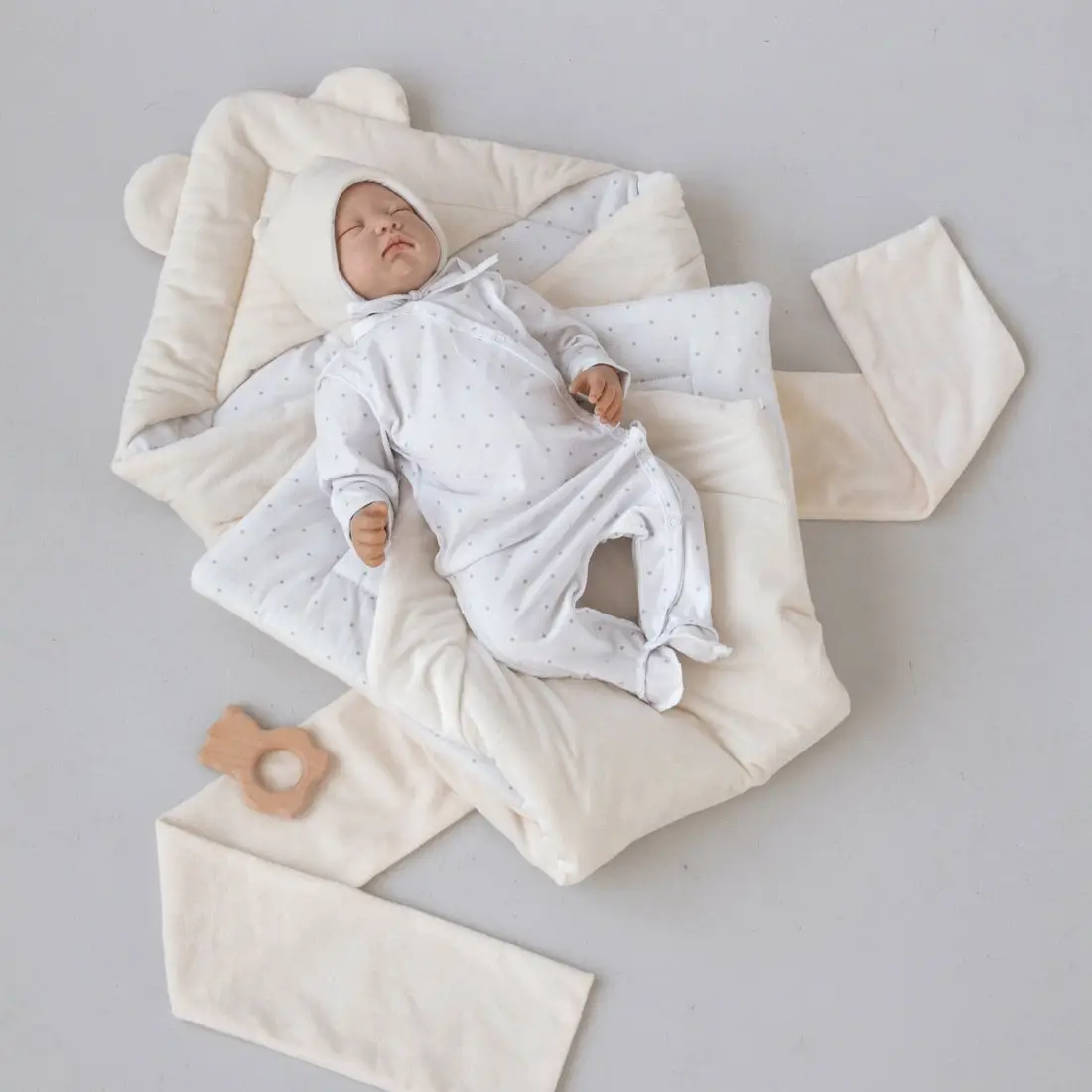 Стильный детский комплект от бренда KiDi обеспечит малыша теплом и комфортом и отлично подойдёт на выписку.