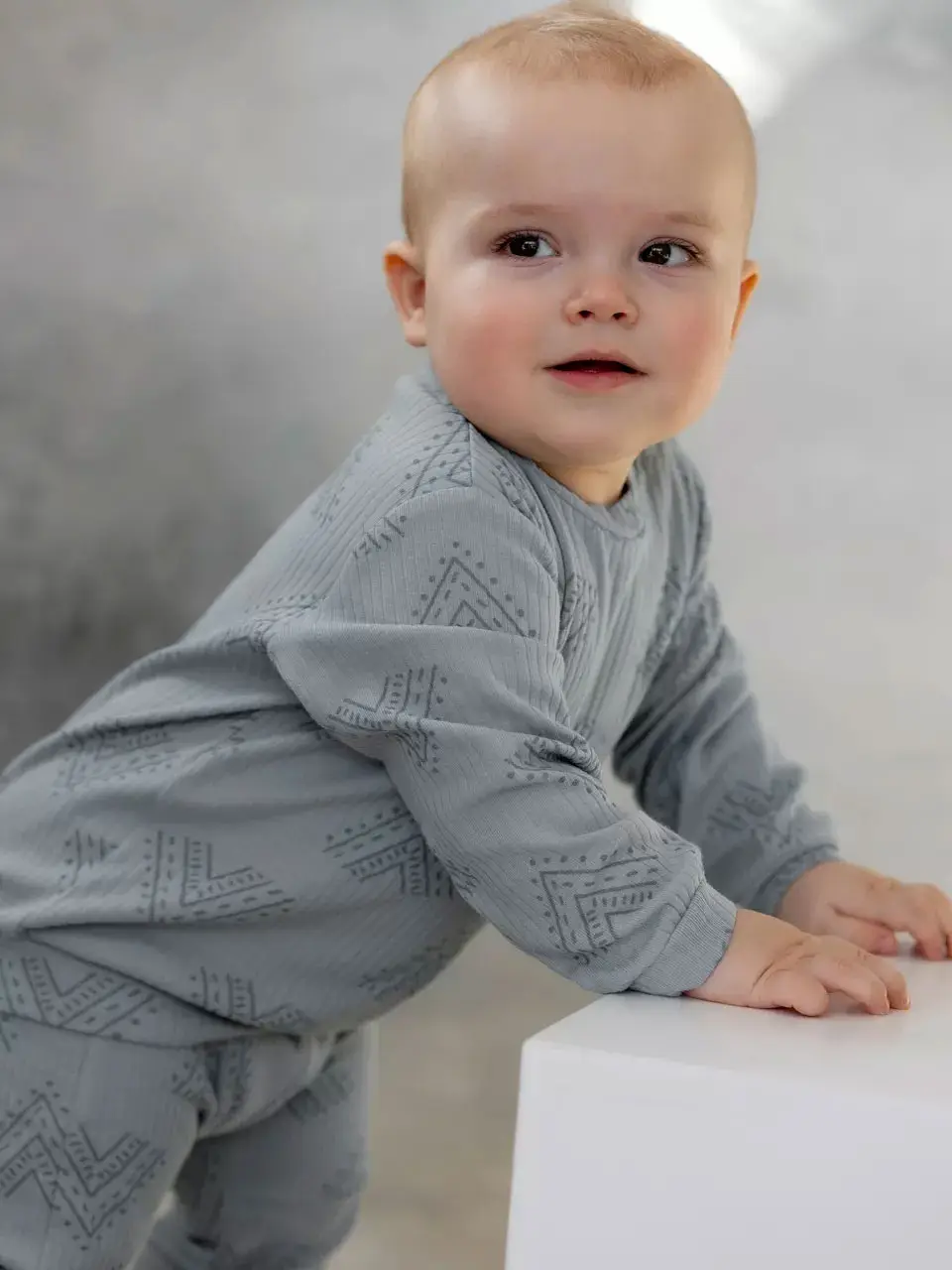 Фуфайка и штанишки со скандинавским узором — комфортная и модная одежда для малыша. Они сшиты из высококачественного натурального хлопка и имеют удобный крой.