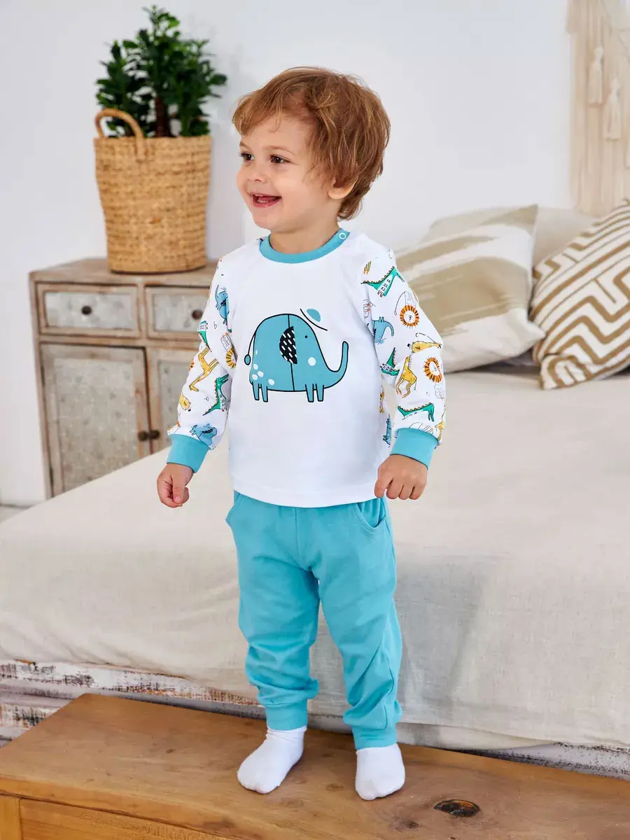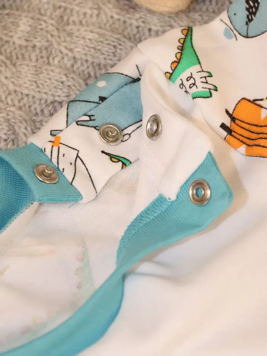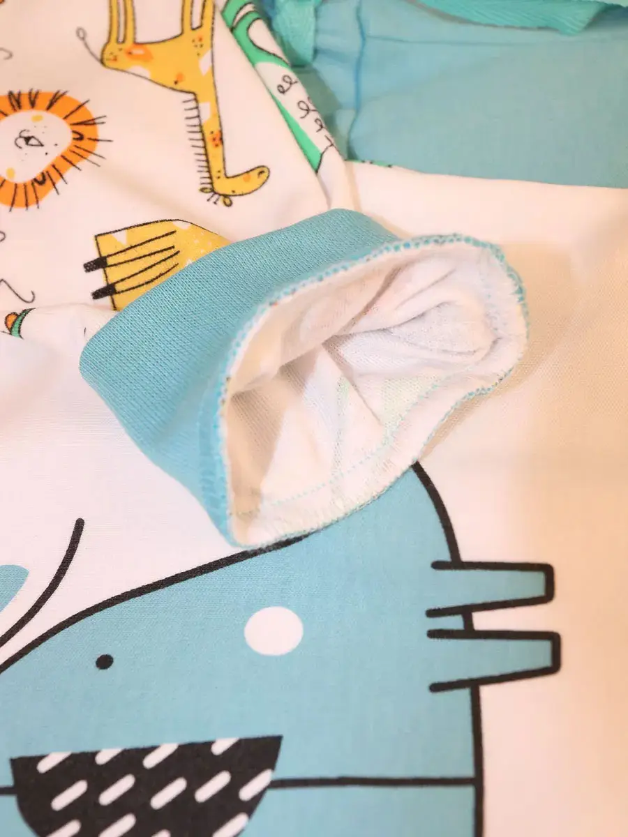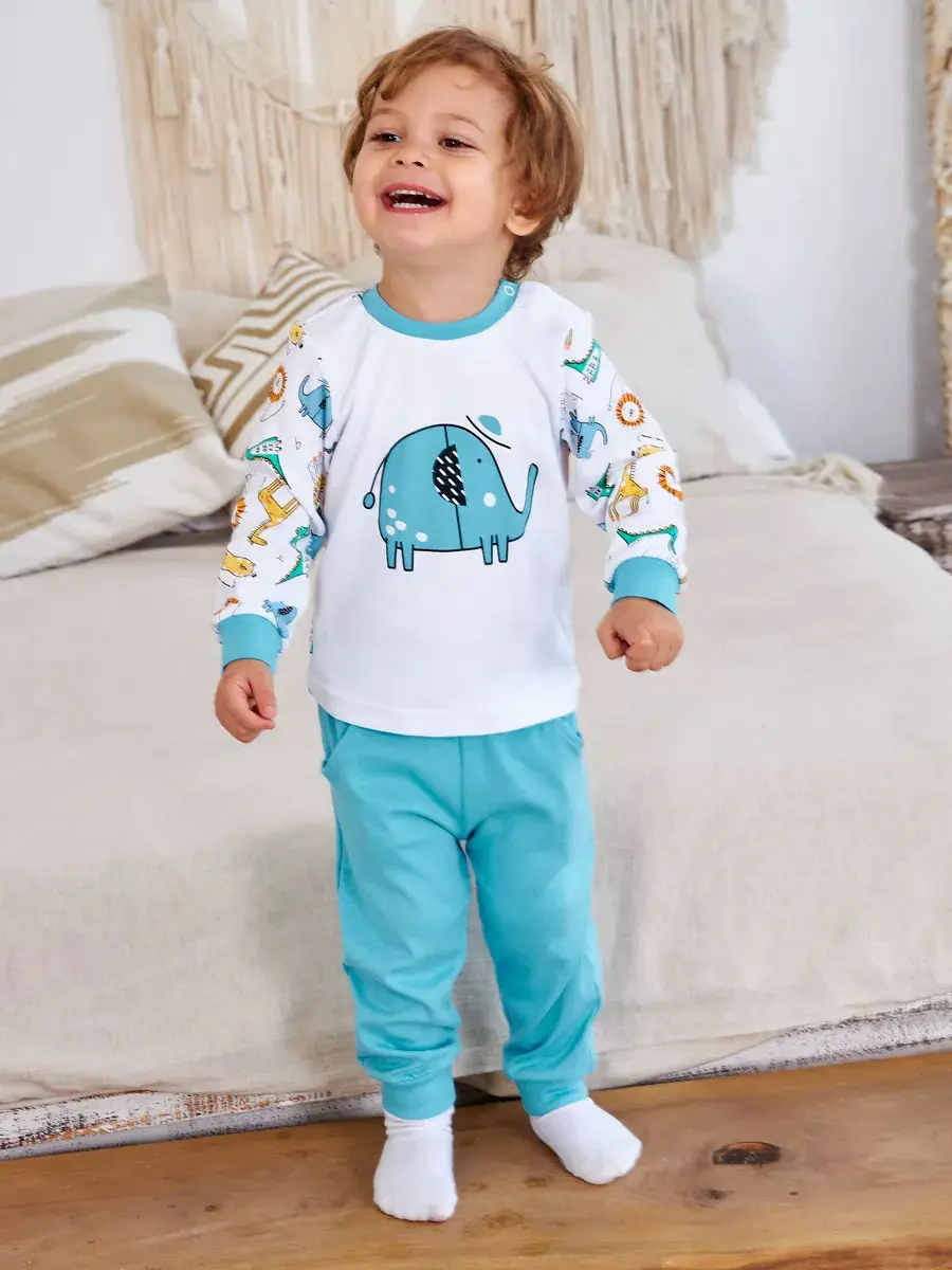 Комплект состоит из кофточки на кнопках на плече и штанишек с манжетами и поясе на рибане. Яркая модная расцветка не оставит равнодушными малышей и мам.