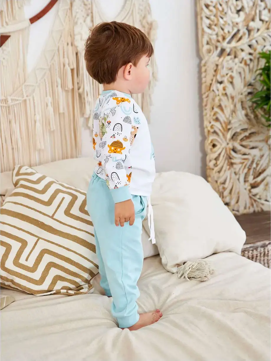 Комплект от бренда Осьминожка выполнен из мягкого нежного трикотажного материала. Кофта на двух кнопках не плече, впереди с печатным рисунком, штаны с мягкими манжетами удобной, широкой резинкой в поясе и декоративным шнурком. Хлопок в составе обеспечит комфорт и удобство во время носки.