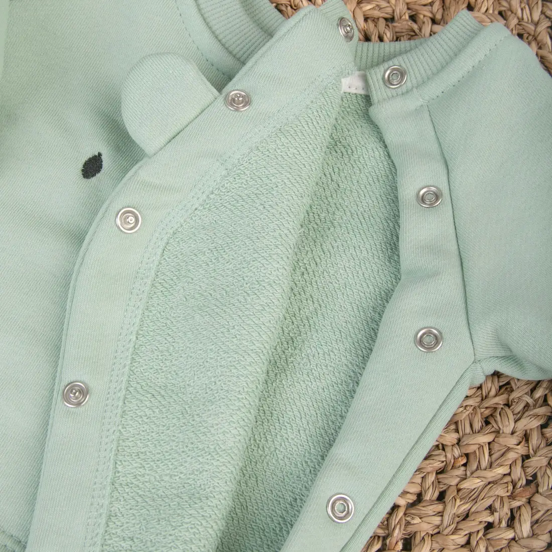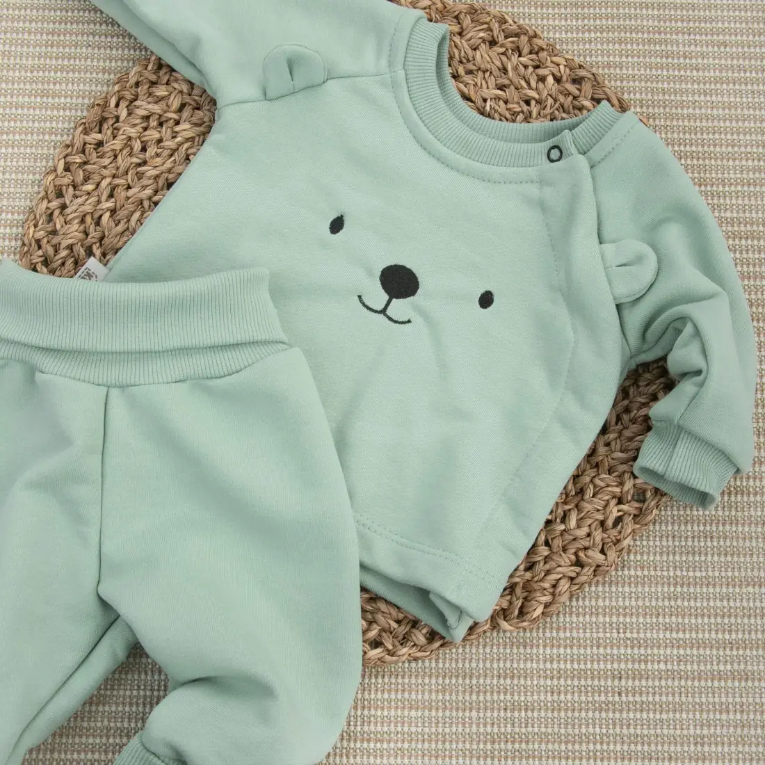 В комплект "Пикколино Лайт" KiDi kids входят свитшот, штаны и боди. Свитшот украшен вышивкой с мордочкой медвежонка на груди и имеет кнопки по бокам для удобства одевания, что позволит легко одеть и раздеть малыша, также на рукавах предусмотрены регулируемые манжеты. Штаны оснащены с широкой регулируемой резинкой на талии и штанинах. Боди оснащено застежками-кнопками снизу для удобной смены подгузника. Рукав без швов в области подмышек предотвращает натирание.