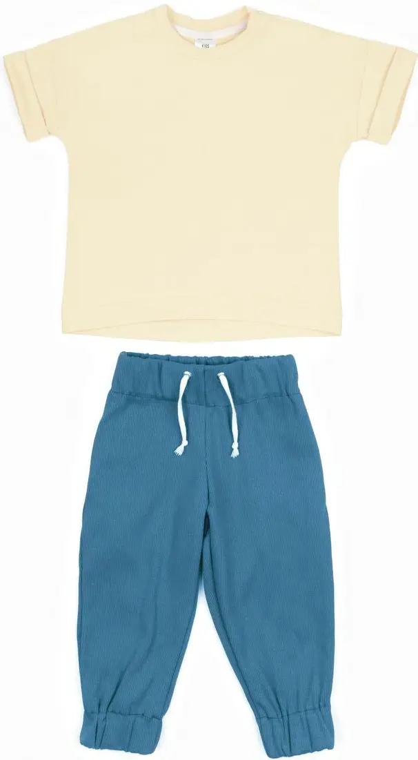 Костюм детский Amarobaby Jump, футболка,брюки, кремовый и синий, размер 92-98