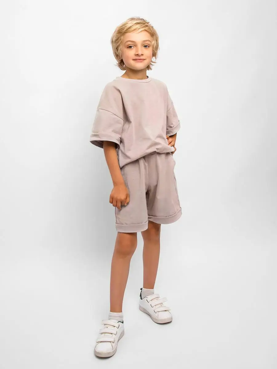 Костюм детский Amarobaby Jump футболка, шорты, бежевый, размер 98-104