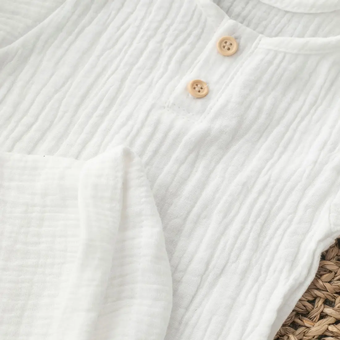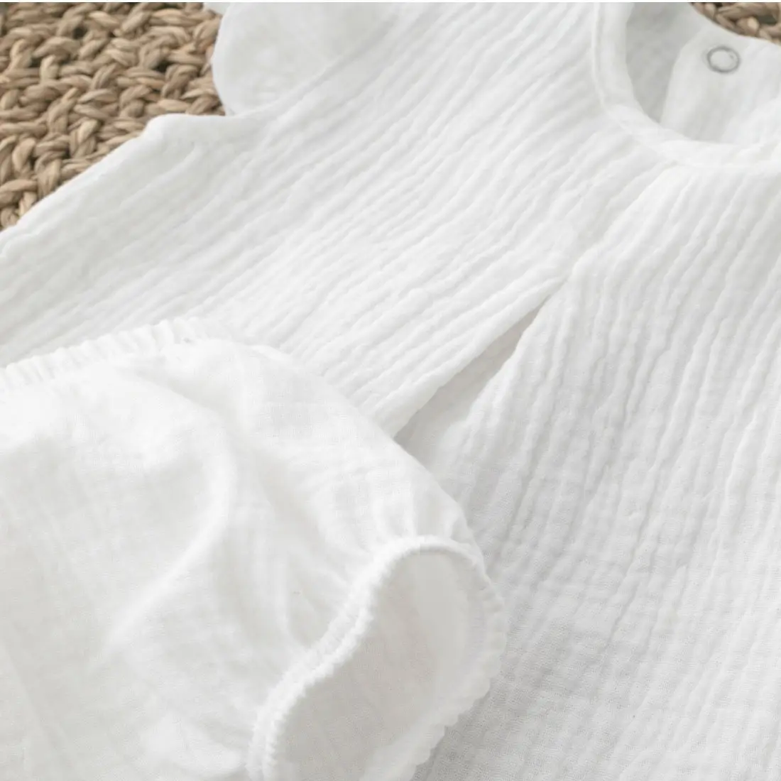 Летний комплект топ и трусики от бренда KiDi kids выполнен из муслина, структура которого образует воздушные канала, за счёт чего кожа малыша будет дышать, в состав входит 100% хлопок.