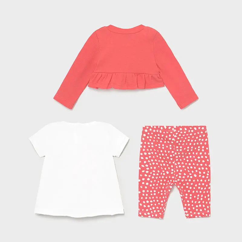 Стильный комплект из 3 предметов на каждый день для девочки от Mayoral. Футболка с коротким рукавом и круглым вырезом горловины. Удобная зас...