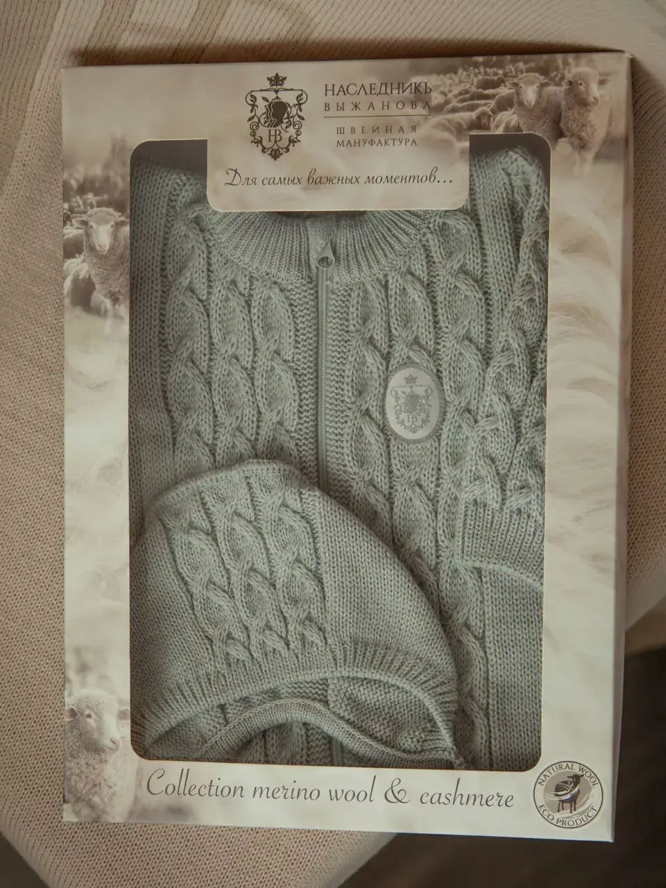 Комплект из 2 предметов для новорождённых и малышей от бренда Наследник Выжанова подойдёт на выписку из роддома, для первой фотосессии и для прогулок на свежем воздухе. Комбинезон с открытыми ножками выполнен из смесовой пряжи мериновой шерсти и пан-а. Шерсть придаёт изделию мягкость и теплоту, а пан делает его неприхотливым в уходе.