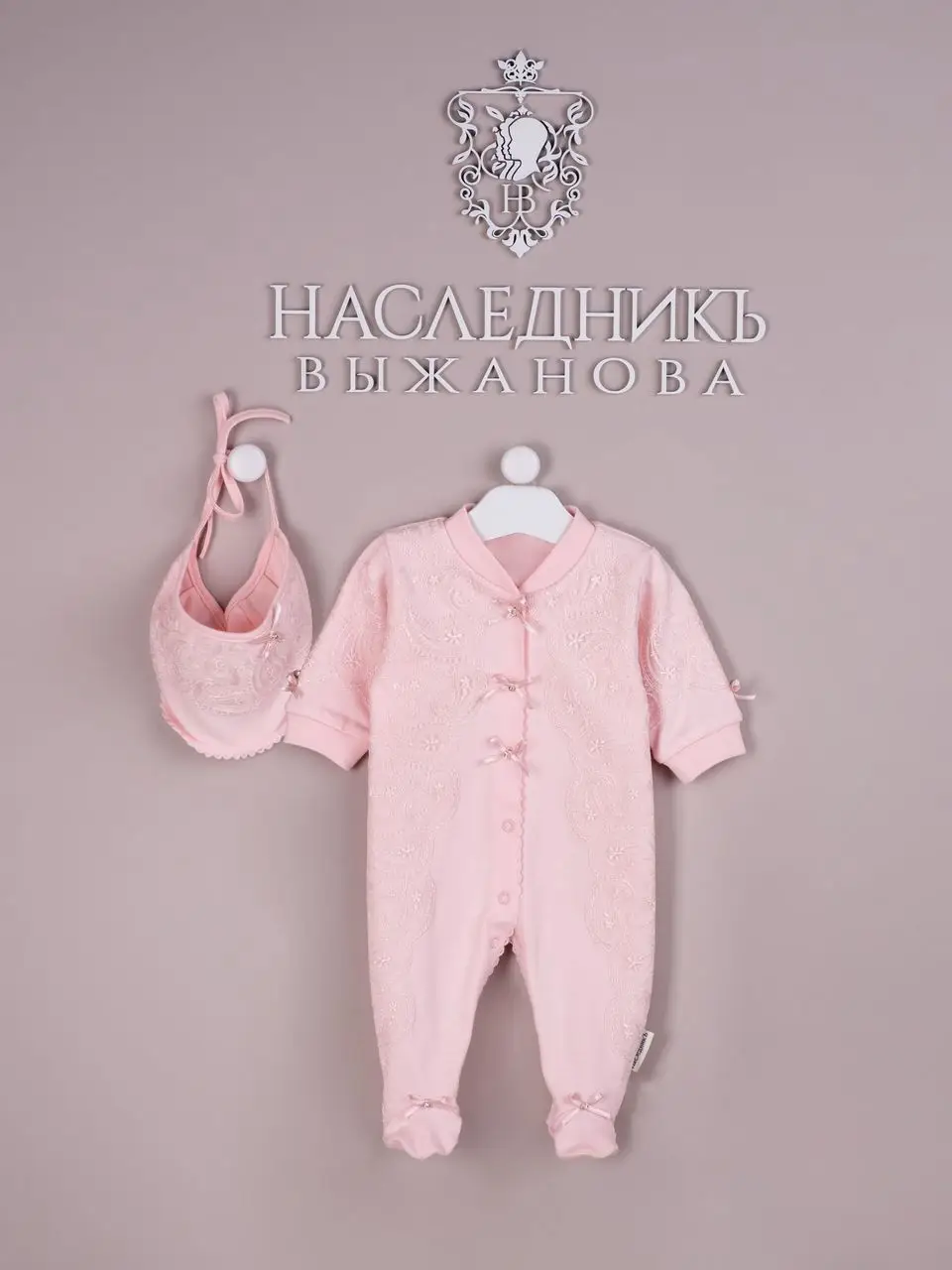 Нежно-розовый комплект на выписку для девочки Наследник Выжанова выполнен из хлопка высочайшего качества.