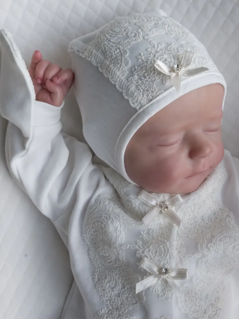 Комплект на выписку выполнен из хлопка высочайшего качества.