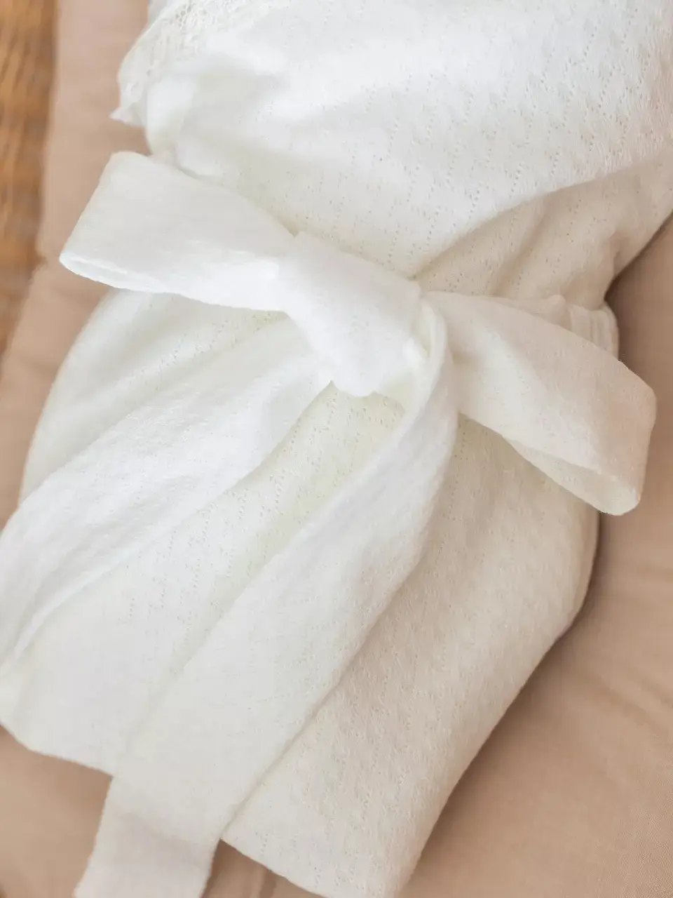 Благодаря нежным, стильным оттенкам такой комплект можно использовать как подарок малышу и родителям на выписку новорождённого из роддома.