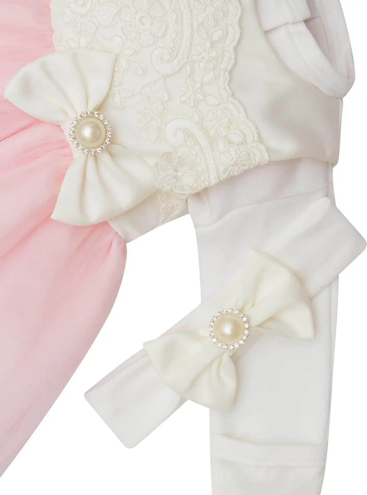 Комплект на выписку Luxury Baby Бусинка, 3 предмета, розовое с молочным кружевом, айвори, р. 56